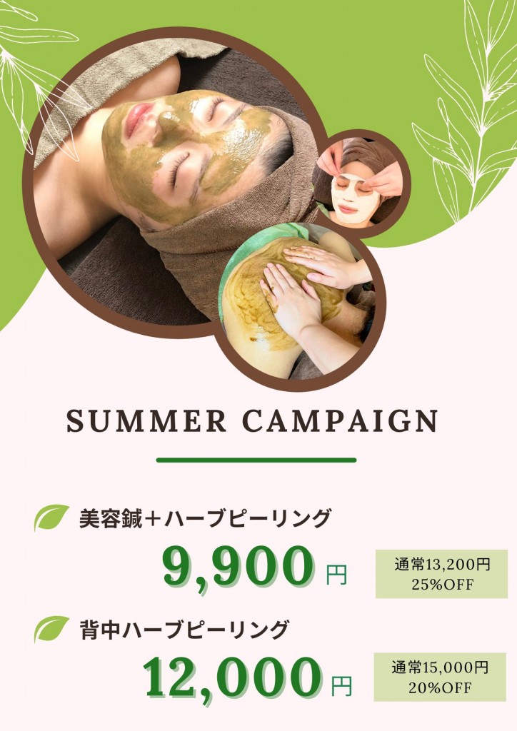 今回は、大人気ハーブピーリングを中心としたメニューとなっております!