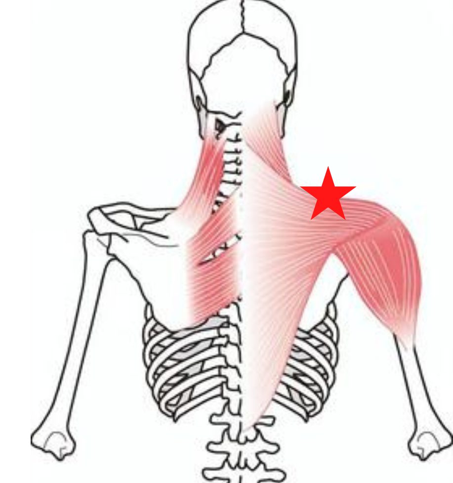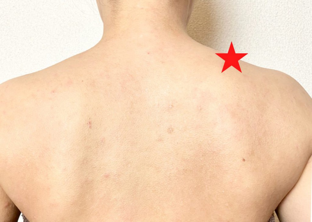 首の付け根の真ん中と、肩先を結んだ中心にあります。