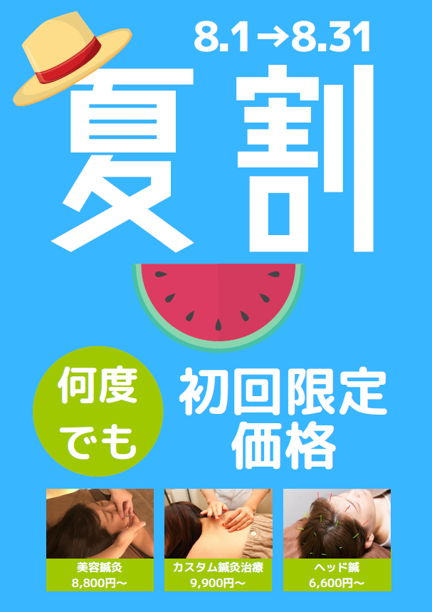 8月中は何度でも、初回限定の価格で受けられます(*^^*)